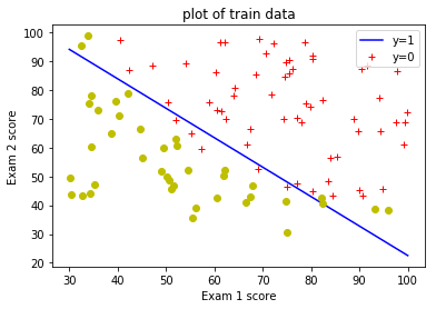 用sklearn库中的线性模型 LogisticRegression 来训练数据,得到假设函数的参数Theta。模型的准确率可以用score函数求得。而predict可以用来预测数据所属的类别,其中predict_proba可以显示概述所属类别的概率。